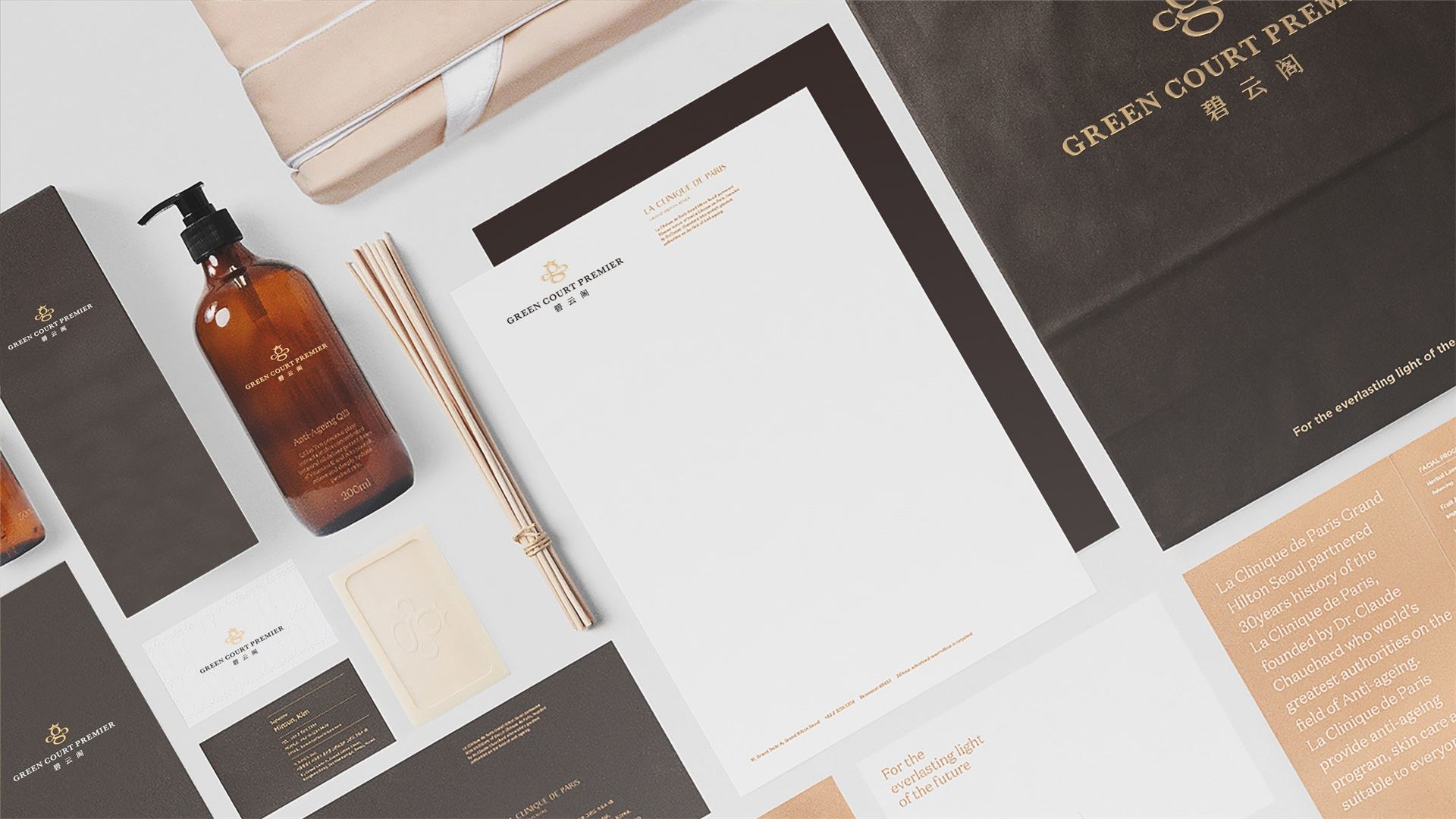 标志图形通过提炼英文品牌名首字母 “G”、“C”的品牌基因,构成奢华蜜蜂的符号,九游9game象征碧云阁给予客户无微不至的服务和奉献精神。同时寓意碧云阁内部员工的勤劳素养及亲和形象。蜜蜂代表勤劳,服务;占位蜜蜂,即占位酒店服务。